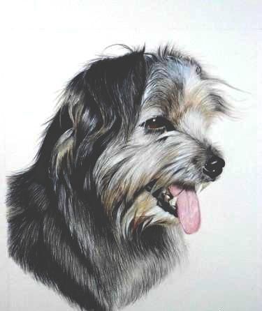 · chien réaliser aux fusain puis finis aux crayons couleur